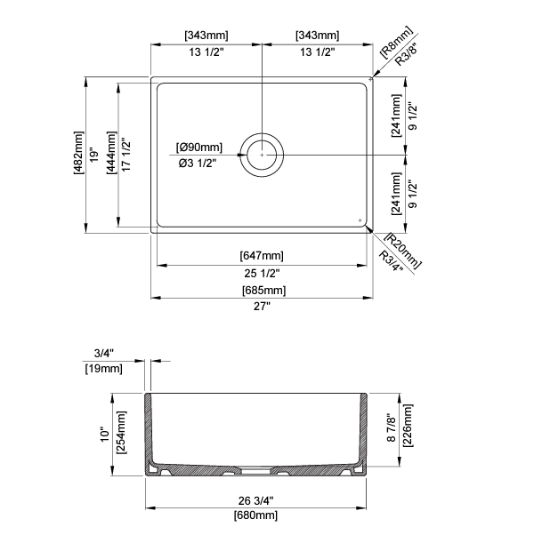 Due to the fireclay process, dimensions may vary. Please use the actual sink that you will be installing in order to determine the cutout dimensions for your countertop.