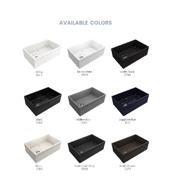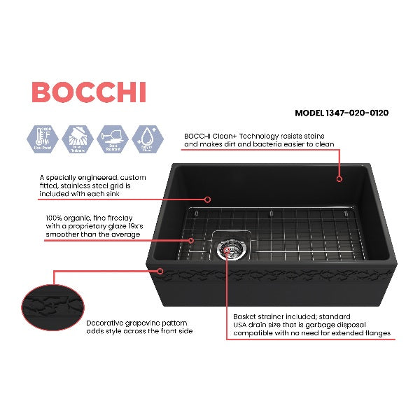 Bocchi Fireclay Farmhouse Sink 30" Single Bowl Vigneto W/ Grid Technical Sheet Click Here