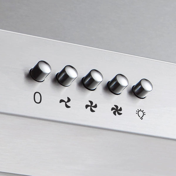 The two replaceable 3W LED lights are energy efficient and are specifically integrated below your range hood to perfectly light up your cooking area. With the push button controls, you can easily switch between the 3 different fan speed levels and control the lights. The integrated range hood is suitable for a variety of cooking methods from simmering to grill.