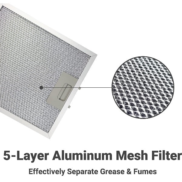 - • SUPERIOR FILTRATION: 5-layer aluminum mesh filters trap cooking grease and oil with ease.