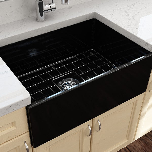 Contempo 27 Black Fireclay Single Bowl Farmhouse Sink w/ Grid by BOCCHI