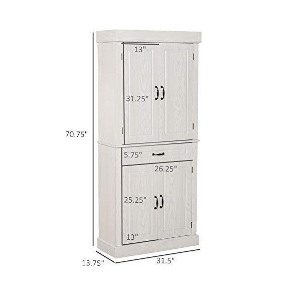 71" Ivory Freestanding Kitchen Pantry with 4 Doors, 2 Large Cabinets and 1 Wide Drawer by HOMCOM