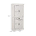 Featuring a wood grain veneer, raised door panels, and antiqued metal hardware, this kitchen cupboard exudes charm and elegance, which will match your kitchen, dining room, or living room.