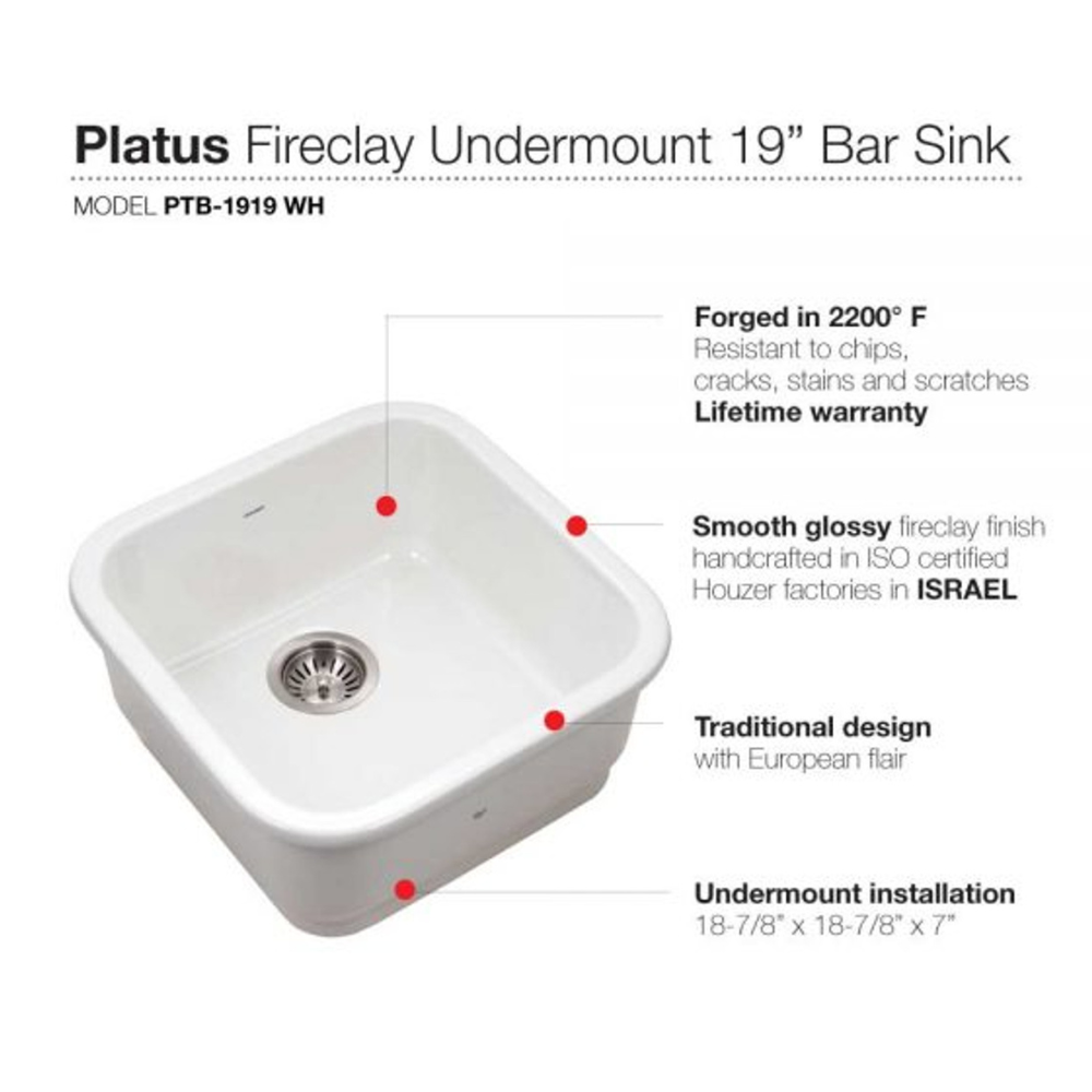 Houzer PTB-1919 Grace the heart of your home with the timeless classic of a Houzer fireclay bar sink that is fired for over 20 hours at 2200° F. The surface is impervious to stains, scratches, and chips, backed by the confidence of Houzer’s Limited Lifetime Warranty. Houzer combines the latest in cutting-edge technology using the most advanced injection molding techniques along with old-world hand craftsmanship. Our fireclay sinks are crafted with 70 years of experience in our own Houzer ISO-certified factories in Turkey.