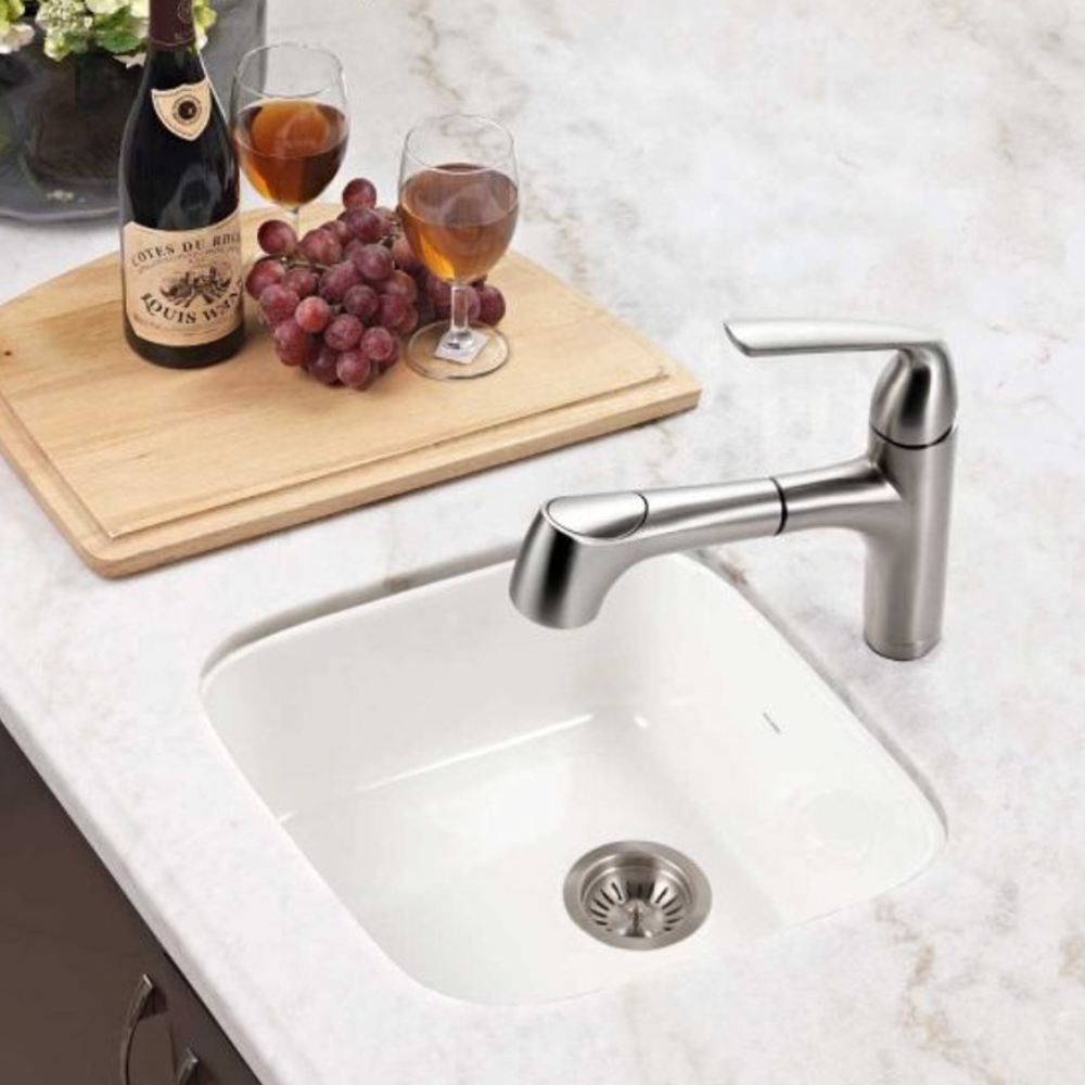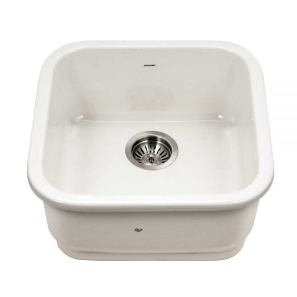 - Classic Square Bar Sink - Upgrade your kitchen with the timeless Design of the Houzer Platus Fireclay Series Undermount 19" Square Bar Sink, featuring a classic square shape and rear drain.