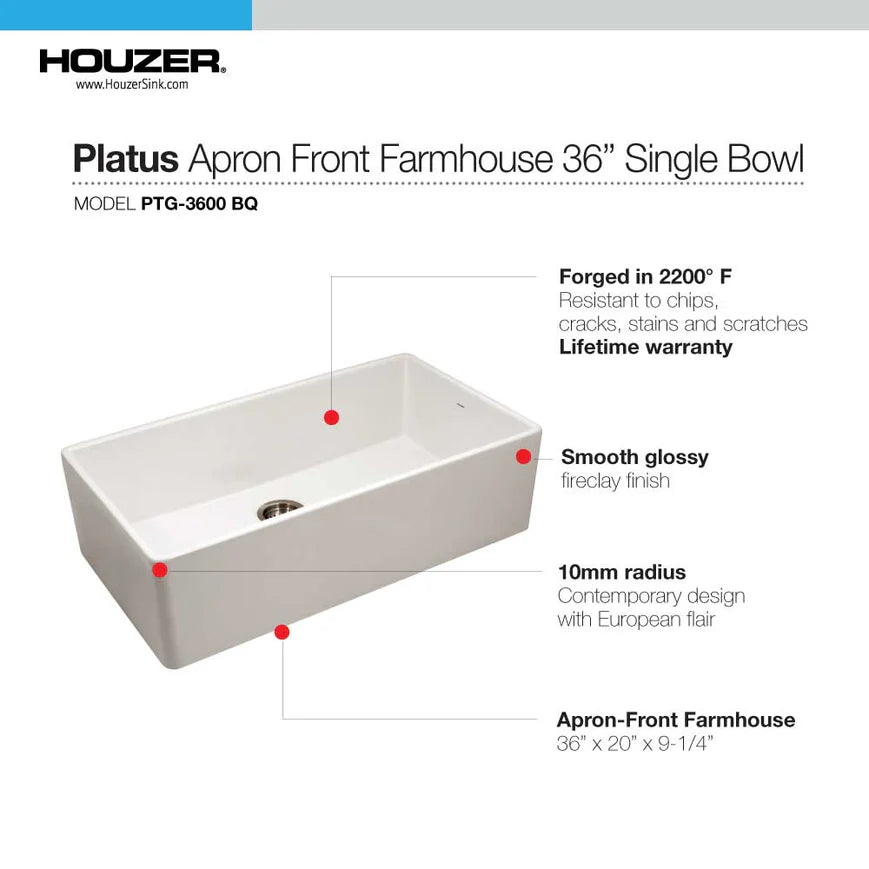 Platus PTG-3600-BQ 36" Biscuit Single Bowl Fireclay Farmhouse Sink by Houzer