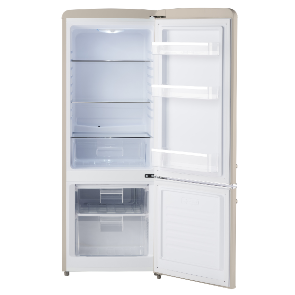 Fun fits anywhere! This compact retro-styled, small refrigerator brings energy-efficient cooling to any space. Only 57″ high and 21.5″ wide, it’s bigger and more spacious than a bar fridge, but smaller and more flexible than a full-size appliance. It fits any lifestyle: basement, lunchroom, garage, apartment, dorm room, or studio. A bright LED-lit, antibacterial top refrigerator cabinet keeps fresh food crisp and handy, while the bottom 1.7 cu. ft. freezer chills fast.