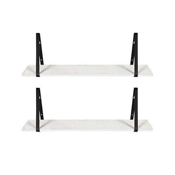 - Each wood shelf is painted in a sophisticated softly distressed pure white which gives a soothing casual feel to any space and looks great contrasted with the black metal brackets. It just looks right