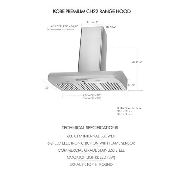 KOBE CH22 36" Stainless Steel Hands-Free Fully-Auto Wall Mount Range Hood