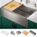 A kitchen fixture that will endure in both beauty and performance, the farmhouse sink creates a distinctive focal point that instantly upgrades any décor. Packed with premium accessories such as the multi-purpose dish drying rack and bamboo cutting board, the integrated ledge system allows you to wash and dry, or chop and slice without losing an inch of counter space.