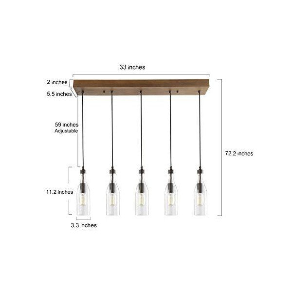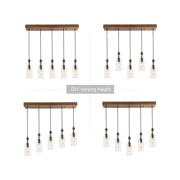 LNC 33" Country Rustic Wood Farmhouse Island Lighting with Glass Bottle Shade