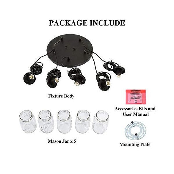 These antique 5 simple clear glass jars inspired this softly glowing, modern industrial chic chandelier. The height of each pendant is independently adjustable for customized lighting configurations as you need. This light is a very decorative product and really a chandelier to own!