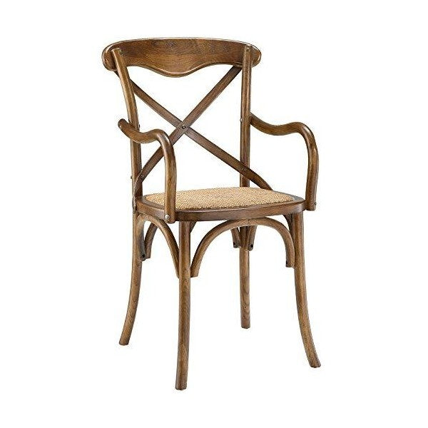Modway 21" Walnut Gear Rustic Modern Farmhouse Elm Wood Rattan Dining Armchair