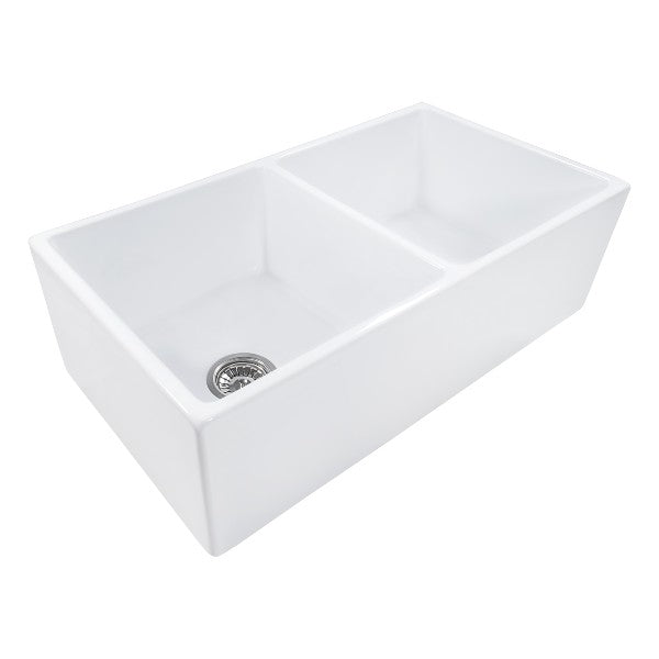 Fiamma RVL2311WH 33" White Double Bowl Fireclay Farmhouse Sink by Ruvati