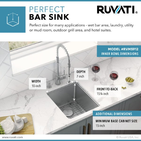 Modena RVM5912 12" Stainless Steel Single Bowl Bar Prep Undermount Sink by Ruvati