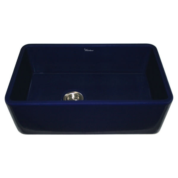 WH3018 Duet 30" Blue Single Bowl Fireclay Reversible Farmhouse Sink w/ Smooth Front Apron by Whitehaus