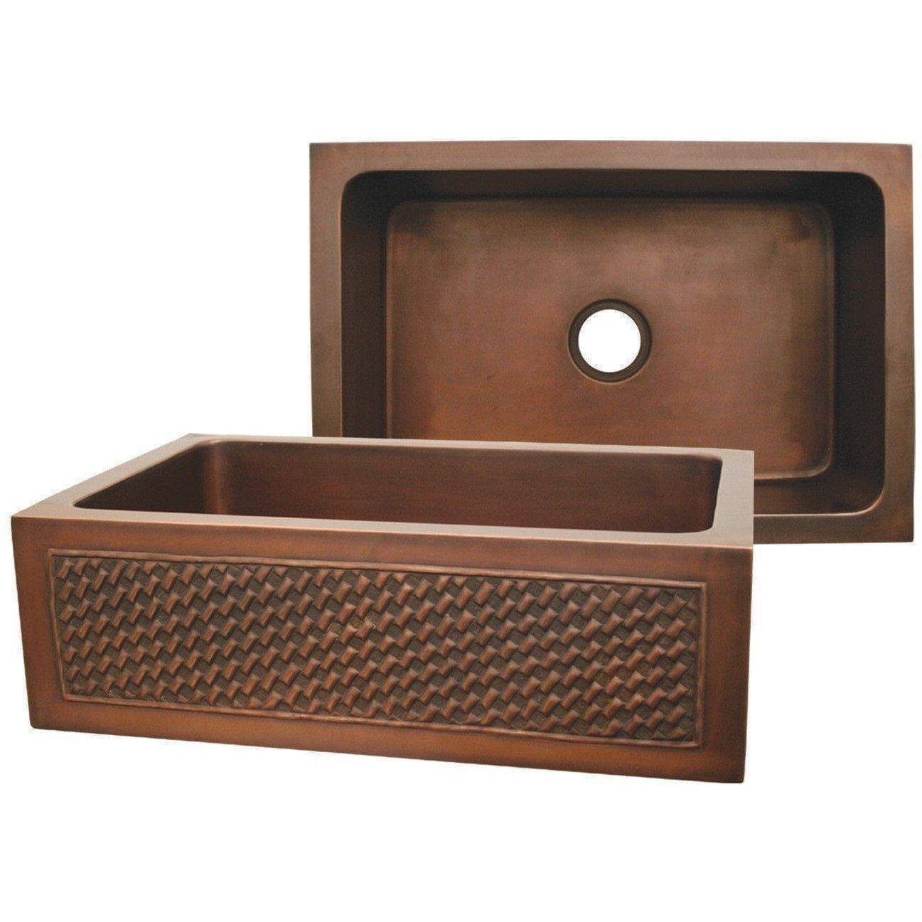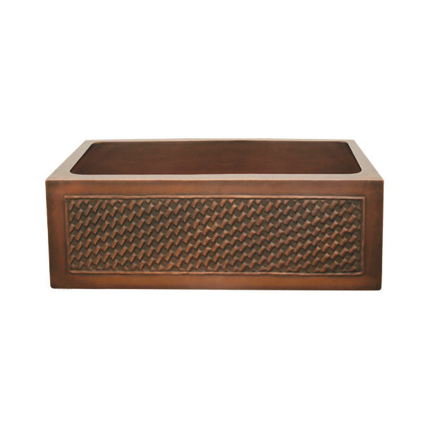 Whitehaus WH3020COFCBW 30" Copper Single Bowl Farmhouse Sink w/ Basket Weave Design