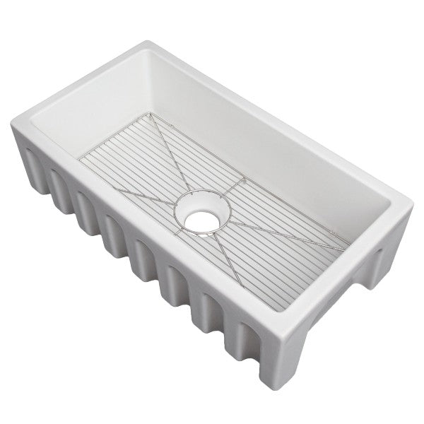 ZLine Venice 33" Single Bowl Reversible Fireclay Farmhouse Sink w/ Grid Manual