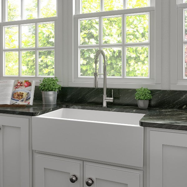 Enjoy easy installation due to its thick, flat edges which allow for a seamless finish with your countertops. ZLINE Fireclay Sinks are made in Italy with the highest quality ceramic mixture, composed of raw kaolin, quartz, and clay.